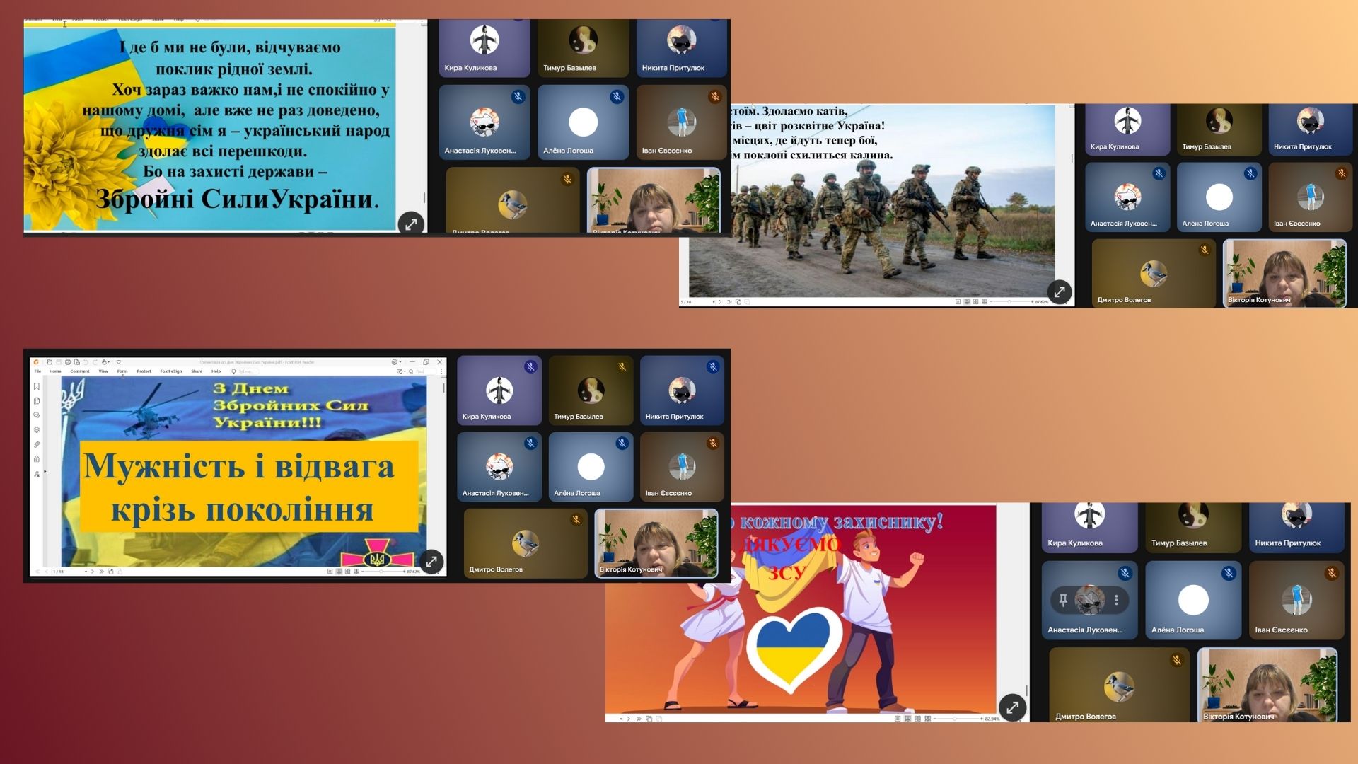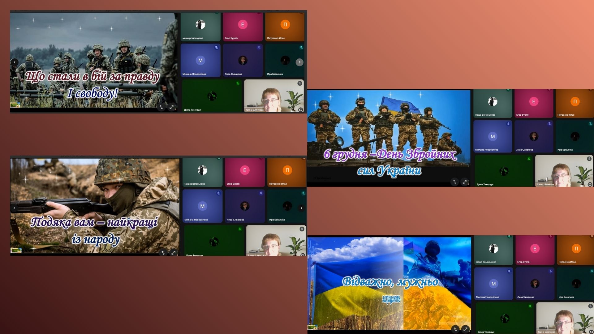 День Збройних Сил України — важливе свято для кожного українця, яке щороку святкують 6 грудня від 1993 року. У цей день вся країна шанує своїх захисників, дякуємо їм за мужність, силу та відданість, які щодня оберігають мир і свободу України. Цього дня країна вшановує військовослужбовців усіх родів військ, від лінії фронту до штабів і навчальних центрів, дякуючи їм за щоденну боротьбу, професіоналізм і незламність. З нагоди цього свята в Білозерській загальноосвітній школі І-ІІІ ступенів №18 Білозерської міської ради проведено ряд заходів: година спілкування “Мужність і відвага крізь покоління”, відеоперегляди «Захисники України — наша гордість і сила», “День Збройних сил України”, усний журнал “Мужні воїни- захисники”. Здобувачі освіти закладу напередодні Дня Збройних сил України, зустрілися з військовослужбовцем у межах проєкту «Почуй Героя».