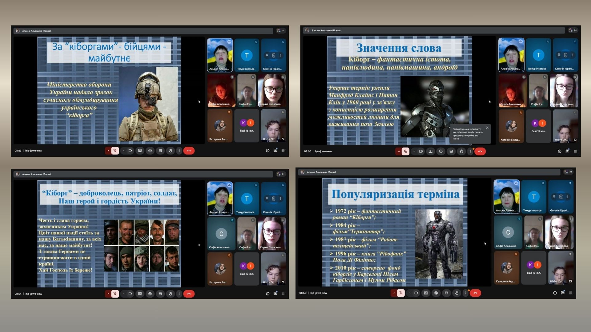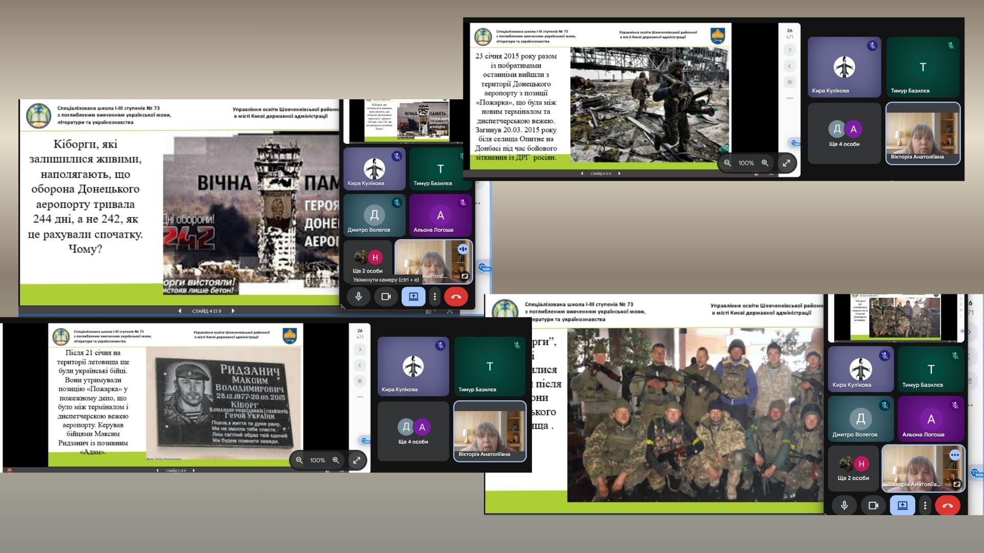 16 січня в Україні – це день пам’яті захисників Донецького аеропорту, які 2014–2015 року героїчно обороняли його від російських окупантів. Українських воїнів назвали «кіборгами» за неймовірну витривалість, стійкість і мужність — ворог не вірив, що люди здатні так довго тримати оборону в нелюдських умовах. Оборона аеропорту тривала 242 дні і стала символом незламності українського війська та духу нації. З нагоди цього свята в Білозерській загальноосвітній школі І-ІІІ ступенів №18 Білозерської міської ради проведені наступні виховні заходи: урок мужності “”День пам’яті кіборгів”, години пам’яті “Кіборги вистояли — не встояв бетон”, “День пам’яті кіборгів”, ” Пам’ятаємо кожного”, перегляд відео “Книга пам’ті полеглих кібаргів за Україну”.