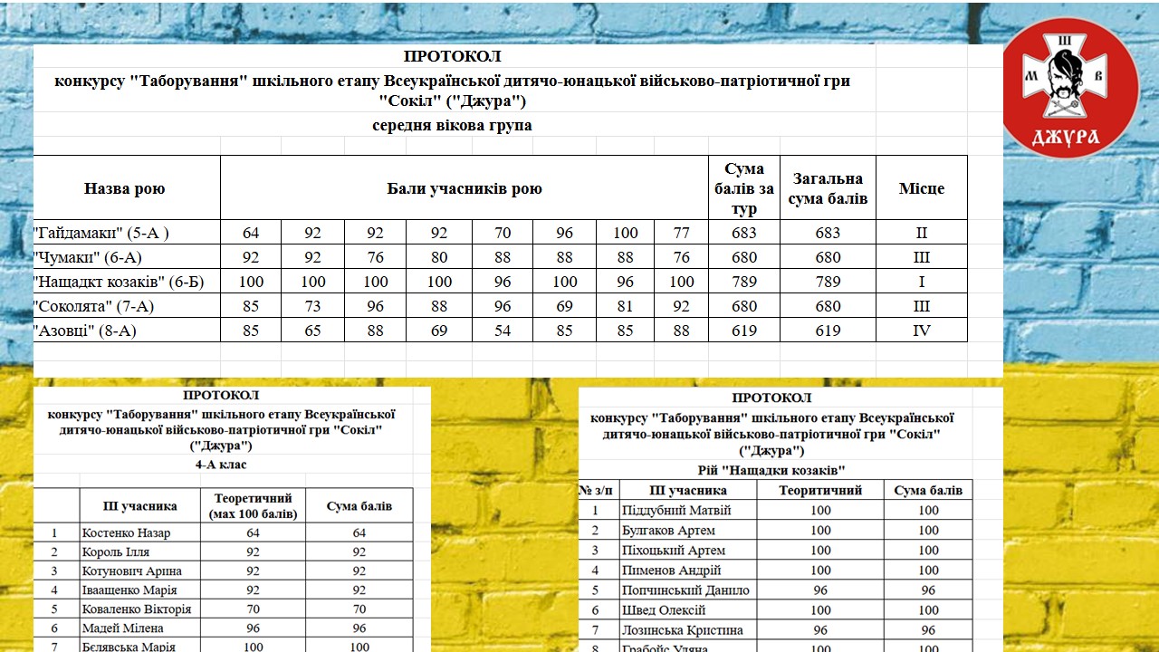 За результатами конкурсу переможцями стали: Молодша вікова група : І місце – рій “Патріоти” 2-А класу І місце – рій «Козачата» 3-А класу ІІ місце – рій “Соколята” 1-А класу ІІІ місце – рій “,Барвінчата” 4-А класу Середня вікова група: І місце – рій “Нащадки козаків” 6-Б класу ІІ місце – рій “Гайдамаки” 5-А класу ІІІ місце – рій “Чумаки” 6-А класу ІІІ місце – рій «Соколята» 7-А класу Старша вікова група: І місце – рій “Булава” 9-А класу ІІ місце – рій “Характерники” 11-Б класу ІІІ місце – рій “Яструби” 11-А класу Щиро вітаємо юних Джур з новими досягненнями. Бажаємо подальших вам успіхів та звершень. #БілозерськаЗОШ18#Джура2025_2026