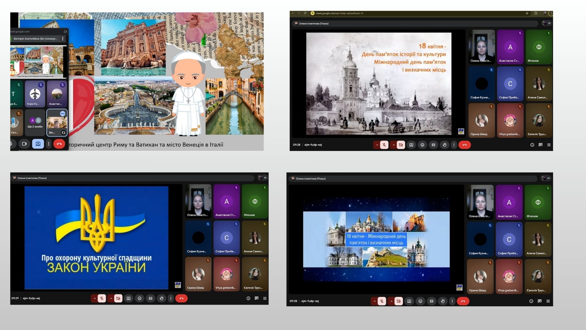 Міжнародний день пам’яток і визначних місць, або День всесвітньої спадщини – відзначається щороку 18 квітня. Свято встановлене для підвищення обізнаності громадськості з різноманіттям культурної спадщини, її вразливістю та необхідністю ефективних зусиль заради збереження її для подальших поколінь. З нагоди цього дня для здобувачів освіти Білозерської загальноосвітньої школи І-ІІІ ступенів №18 проведені виховні заходи: година спілкування «Міжнародний день історичних місць», відеоуроки «Міжнародний день історичних місць», «Визначні історичні пам’ятки України».