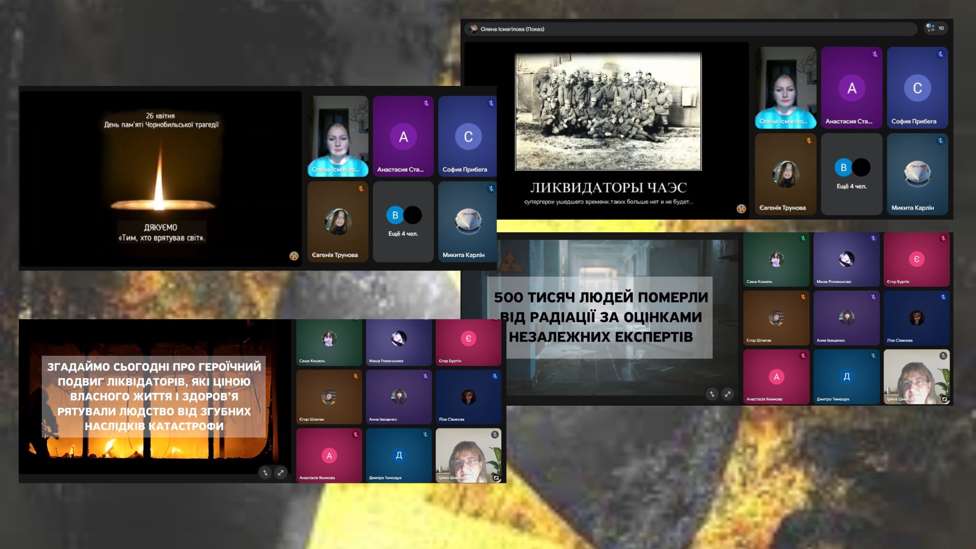 26 квітня 1986 року на Чорнобильській атомній електростанції стався вибух, який спричинив соціально-екологічну катастрофу глобальних масштабів. Ця катастрофа вважається найбільшою за всю історію ядерної енергетики як за кількістю загиблих і потерпілих від її наслідків людей, так і за економічним збитком: мільйони гектарів забруднених радіацією земель, лісів та водойм, втрата здоров’я сотень тисяч людей, чисельні людські жертви та зруйновані долі. Але Чорнобиль – не лише велика трагедія, а й символ безмежної мужності багатьох тисяч ліквідаторів наслідків аварії – пожежників, експлуатаційного персоналу ЧАЕС, військовослужбовців, будівельників, учених, медиків, робітників, які йшли на зустріч невідомій небезпеці, виявивши жертовність та високий патріотизм, зупиняючи ядерну катастрофу. Ризикуючи своїм життям та здоров’ям, вони виконали свій обов’язок і захистили людство від згубного впливу й подальшого розповсюдження радіації. Їхній подвиг назавжди увійшов до літопису мужності й патріотизму українського народу. У цей день в Білозерській загальноосвітній школі І-ІІІ ступенів №18 Білозерської міської ради проведені заходи на честь вшанування пам’яті ліквідаторів аварії на Чорнобильській АЕС: година обговорення «Міжнародний день жертв аварійних катастроф», урок-реквієм “Гірчить Чорнобиль крізь віки”.
